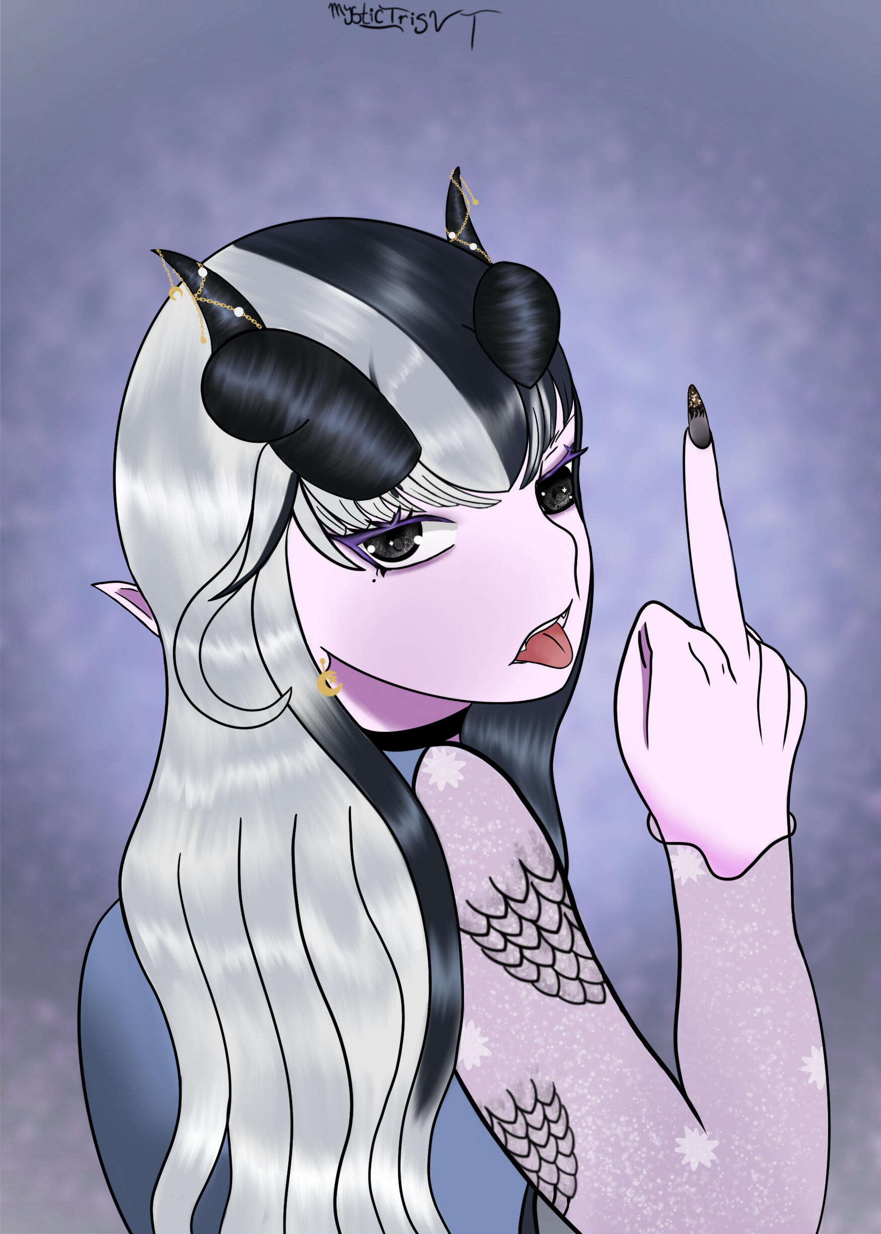 Long ago, in the deepest layers of the Abyss, where the darkest desires manifest into great power, the succubus demon Arshion was born. Through the churning chaos of the void she was carved into existence, a creature of irresistible allure and devastating charm. Yet, unlike her kin, who thrived on deception and hollow indulgence, Arshion had no interest in feigned pleasure. She did not merely wish to feed on the desires of others—she wished to cultivate them, to shape them, to make them flourish under her intoxicating influence.Now, she roams between the Abyss and the mortal realm, not as a predator, but as a sovereign, amassing a small army of friends and followers by whatever means suits her; whether it be by streaming her online shenanigans or recording short encouraging audios for whoever might listen.
