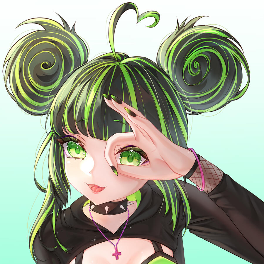 hair Green and Black.